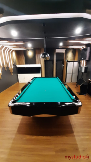 Ruangan ini merupakan ruang karaoke sekaligus ruang billiard pribadi yang berlokasi di Jakarta Timur. Ukurannya tergolong luas untuk ruang karaoke pribadi. Desain didominasi warna abu-abu dengan sedikit sentuhan warna gold yang menjadikannya tampak mewah.